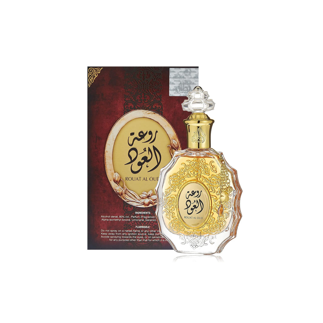 Perfume Rouat Al Oud Eau de Parfum by Lattafa Perfumes is a spicy citrus scent with spicy and woody notes for women and men. The top note opens fresh with bergamot and neroli. Tamarind set beautiful slightly sweet-sour accents. A spicy heart note follows with scents of cool cardamom and spicy notes. A base of cedarwood, Oudh, vetiver, musk and patchouli completes the fragrance warm and rich. A great perfume where the fresh green citrus scents blend harmoniously with woody and spicy notes.
