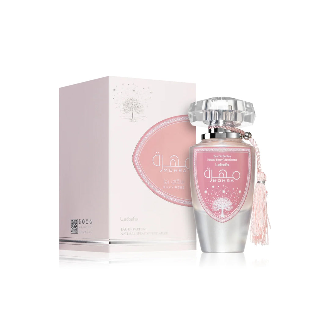 Surround yourself with a fragrance that will make you feel fabulous all day. Mohra Silky Rose Perfume / Eau de Parfum by Lattafa for women expresses optimism and perfect happiness. Lattafa Mohra Silky Rose Eau de for women, inspired by the Arabic words Latif for kindness and Lateefa for pleasant, Lattafa resonates with the luxury and elegance of the Arabian culture, vividly capturing the essence of its glorious heritage in its captivating fragrance.