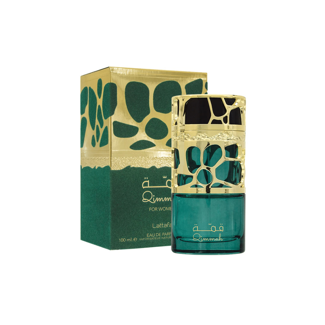Qimmah Eau De Parfum by Lattafa Perfumes is an elegant, tempting oriental perfume for women. Sweet lavender combined with saffron and clary sage in the top opening note. Spicy, aromatic myrrh and soft, warm amber form the heart note. Woody cedars and wonderful oriental Oudh complete the perfume in the soft base. A shimmering, delicate oriental scent with a skilful aromatic balance that is never too sweet, spicy, or overwhelming. The fragrance is ideal for any occasion.